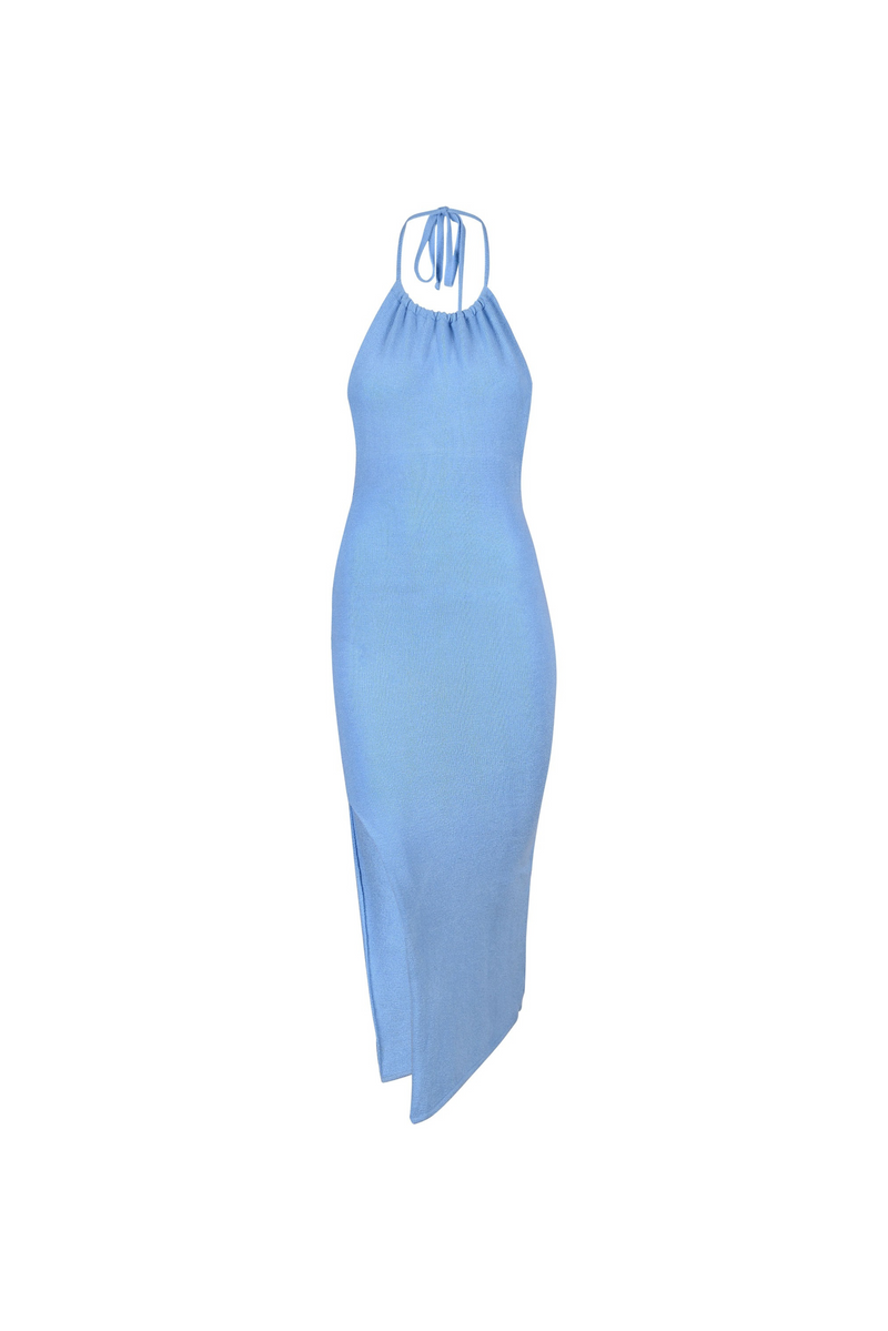 This Aqua Dress can be a dress of your dreams. With a backless design and strap that ties the neck, it’s able to give the high-waist effect while creating a long and elegant silhouette. The movement of this dress shows the beauty of each curve on your body.